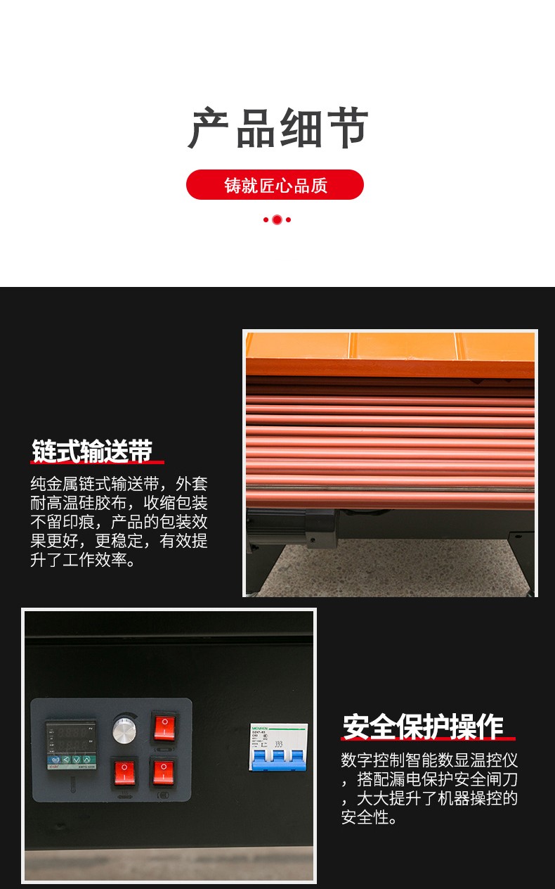 - 自動化程度高助力效率提升:這類機器通常具備較高的自動化水平,能夠與上下游的生產線設備無縫銜接。產品可以通過輸送帶自動進入收縮機,在經過熱收縮包裝后又自動輸出,整個過程無需人工過多干預。而且,其自動化操作還可以通過預設的程序進行精準控制,如根據產品的尺寸和包裝要求自動調整噴氣強度和輸送速度,進一步提高生產效率。