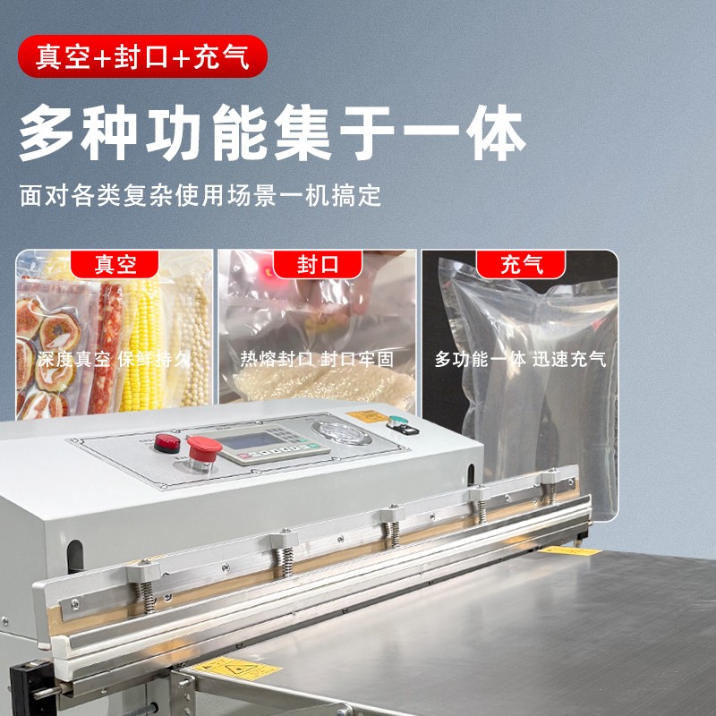 多功能一體的外抽真空包裝機,是在基礎外抽真空功能上,整合了充氣保鮮、封口、印字等多種功能的設備,能一站式滿足不同物品的包裝需求,核心優勢是功能集成度高、場景適配性強,無需額外購置多臺設備。