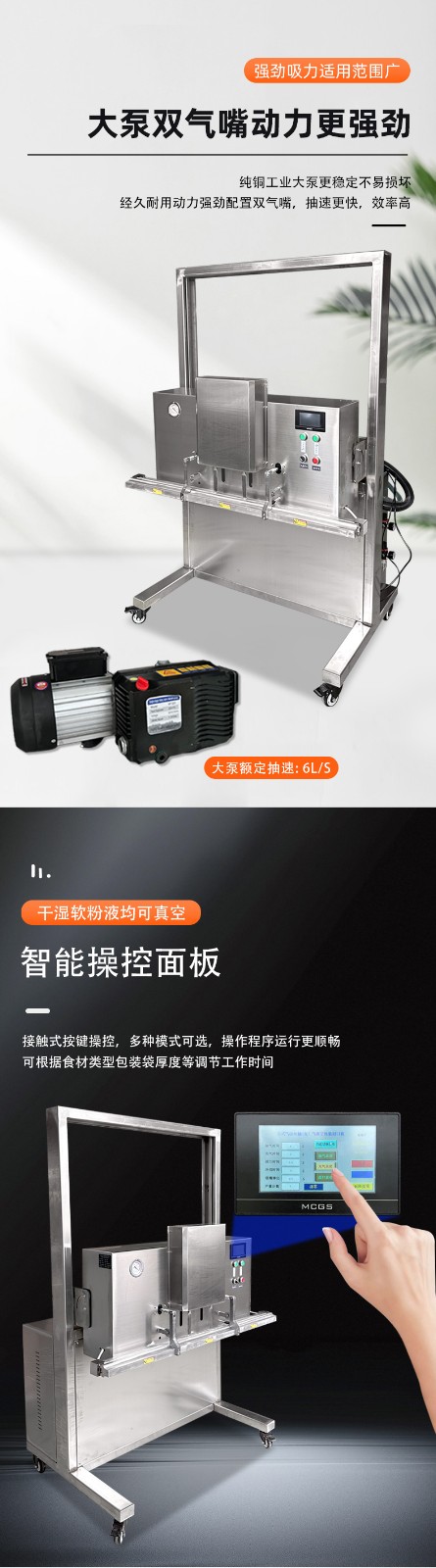 硬件適配保障:這類設備的外殼和真空室多采用不銹鋼材質,抗腐蝕、不易生銹,即便接觸醬料、海鮮等帶水分的物料,也能穩定運行,且清潔方便,可避免潮濕環境對機器的損壞。部分機型還針對液態物料優化了密封結構,防止包裝時液體滲漏影響設備部件。