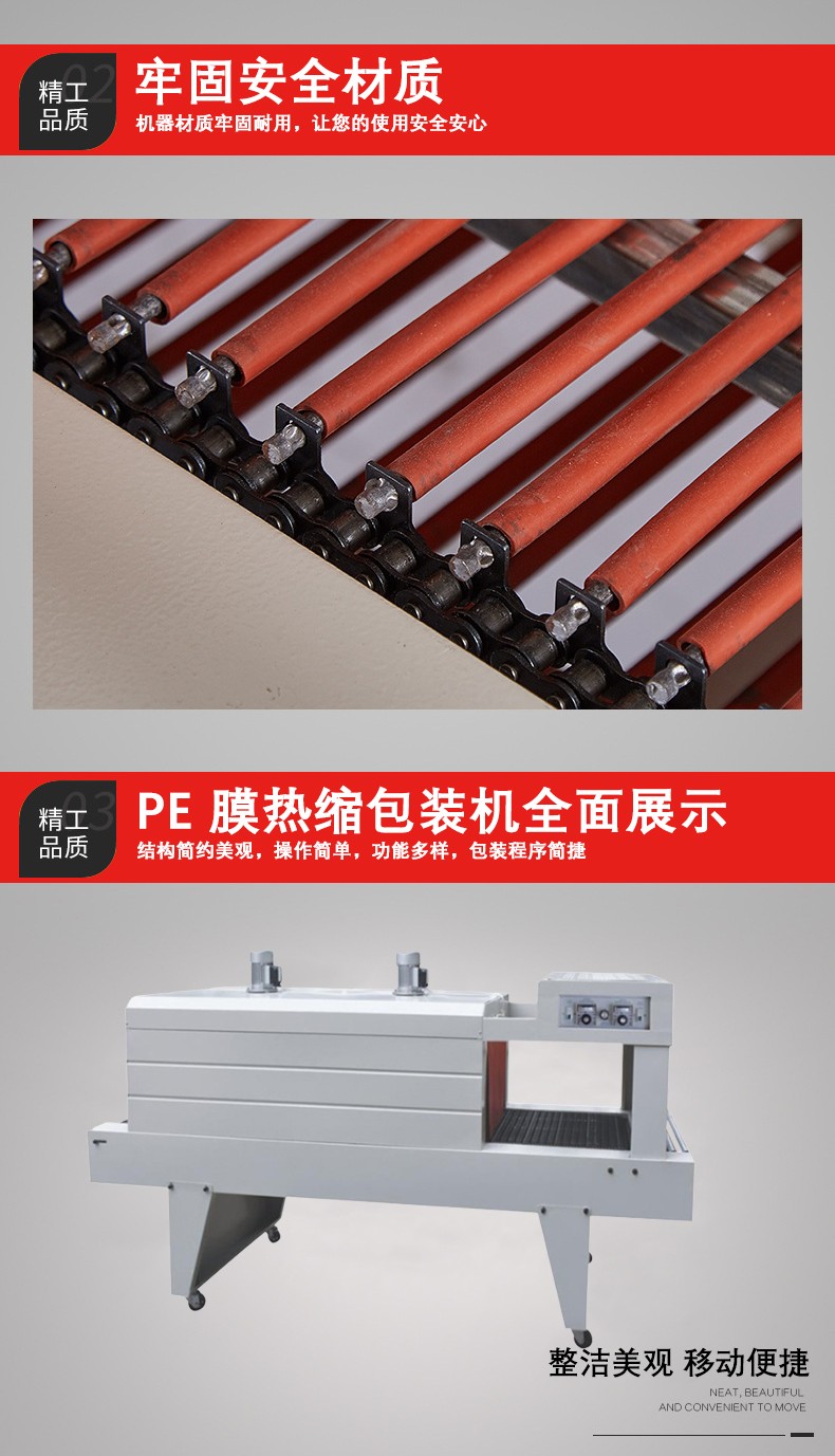 - 包裝質(zhì)量高:PE 熱收縮包裝機(jī)能夠使 PE 薄膜緊密地貼合產(chǎn)品,包裝后的產(chǎn)品外觀整潔、美觀,沒(méi)有褶皺。由于 PE 薄膜本身具有良好的柔韌性和透明度,包裝后的產(chǎn)品可以清晰地展示其形狀和外觀,同時(shí)也能有效地防止灰塵、水分等進(jìn)入產(chǎn)品,起到很好的保護(hù)作用。