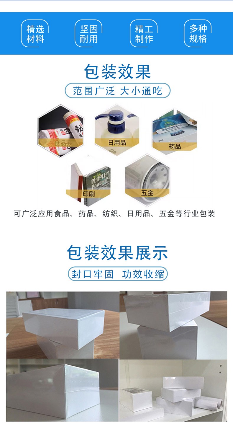 - 材質(zhì)和厚度:不同材質(zhì)的薄膜(如 PVC、POF、PE 等)有不同的熱封和熱收縮特性。在選型時(shí),要確保設(shè)備的邊封溫度、熱收縮溫度和速度等參數(shù)能夠與所使用的薄膜相匹配。例如,POF 薄膜透明度高、韌性好,但熱收縮溫度相對(duì)較低,需要設(shè)備能夠精確控制在合適的溫度范圍內(nèi)進(jìn)行熱收縮。薄膜的厚度也會(huì)影響包裝效果,較厚的薄膜可能需要更高的邊封溫度和壓力,因此要選擇能夠滿足不同厚度薄膜包裝要求的設(shè)備。