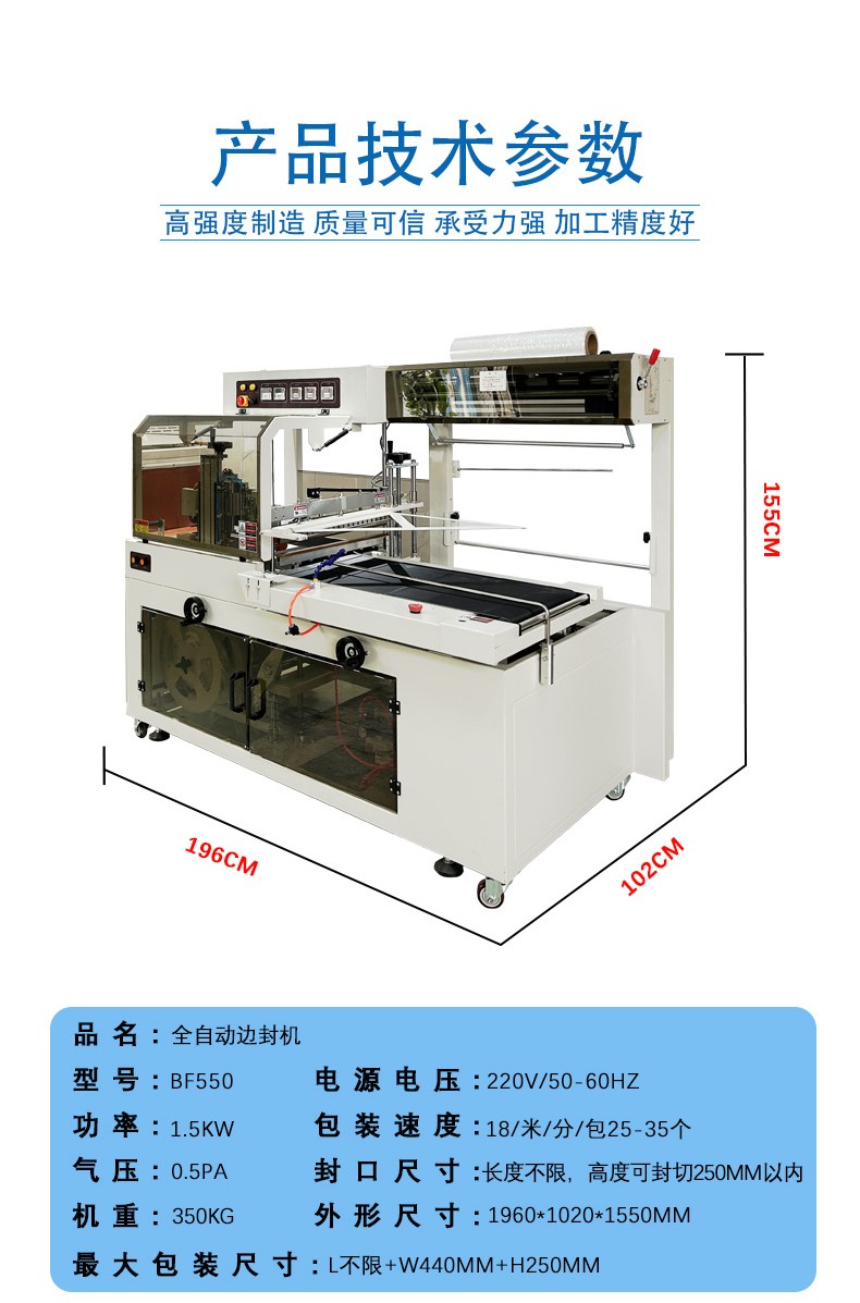 全自動(dòng)邊封餐具熱收縮膜封切包裝機(jī)熱封機(jī)快遞鞋紙盒塑封套膜機(jī)
